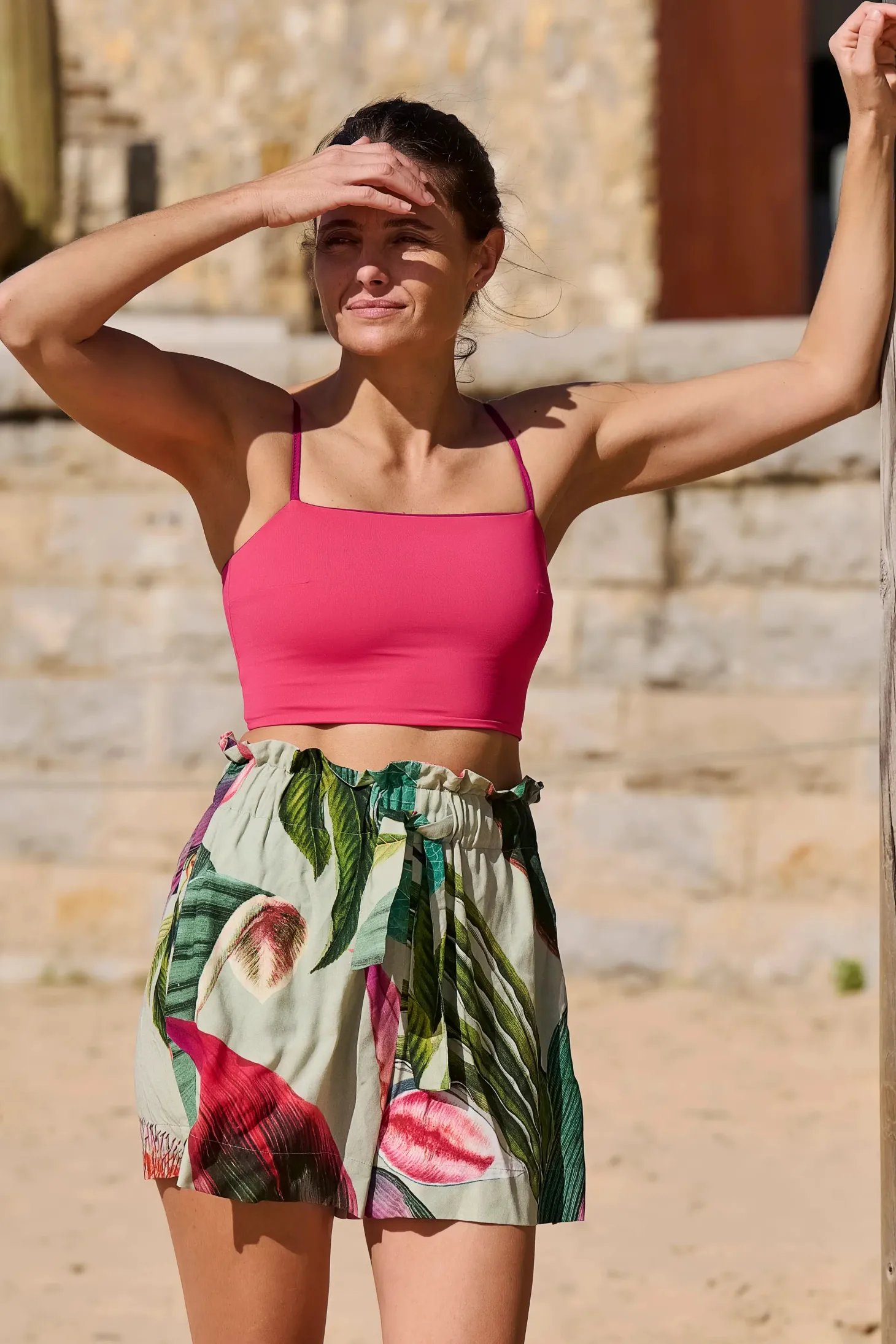 Light and airy shorts with a wide leg. The soft waistband makes the trousers particularly comfortable. The floral print is summery and special and goes perfectly with the colors of our NEW SUMMER swimsuits and bikinis.