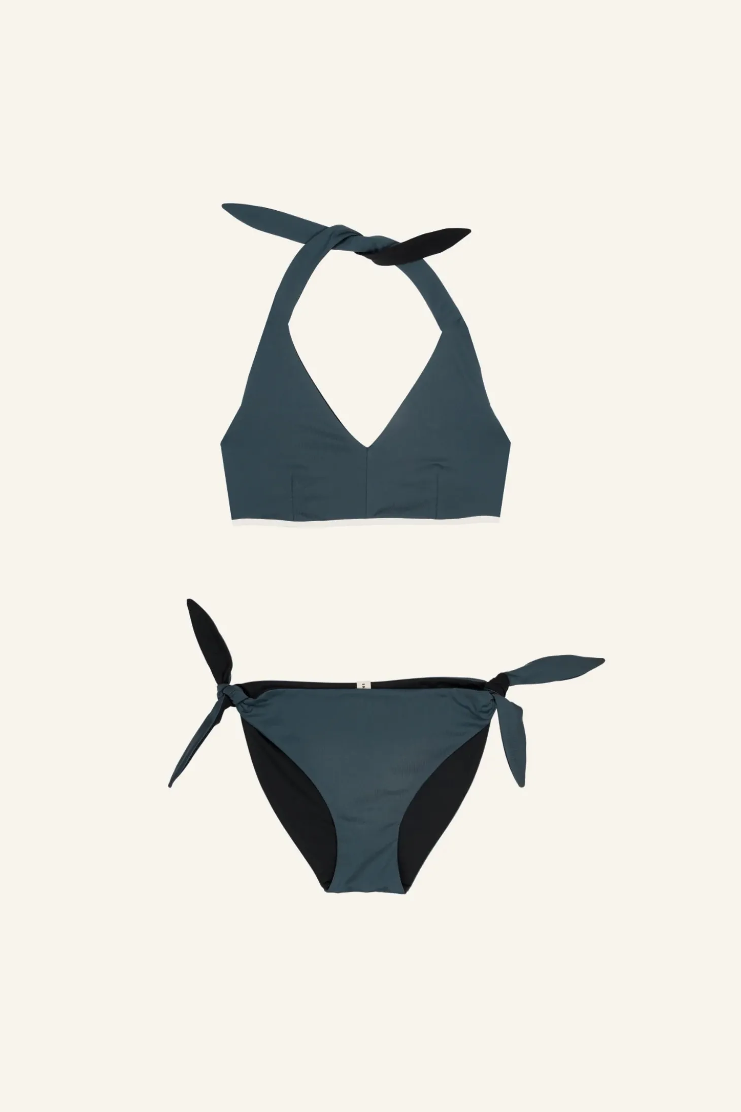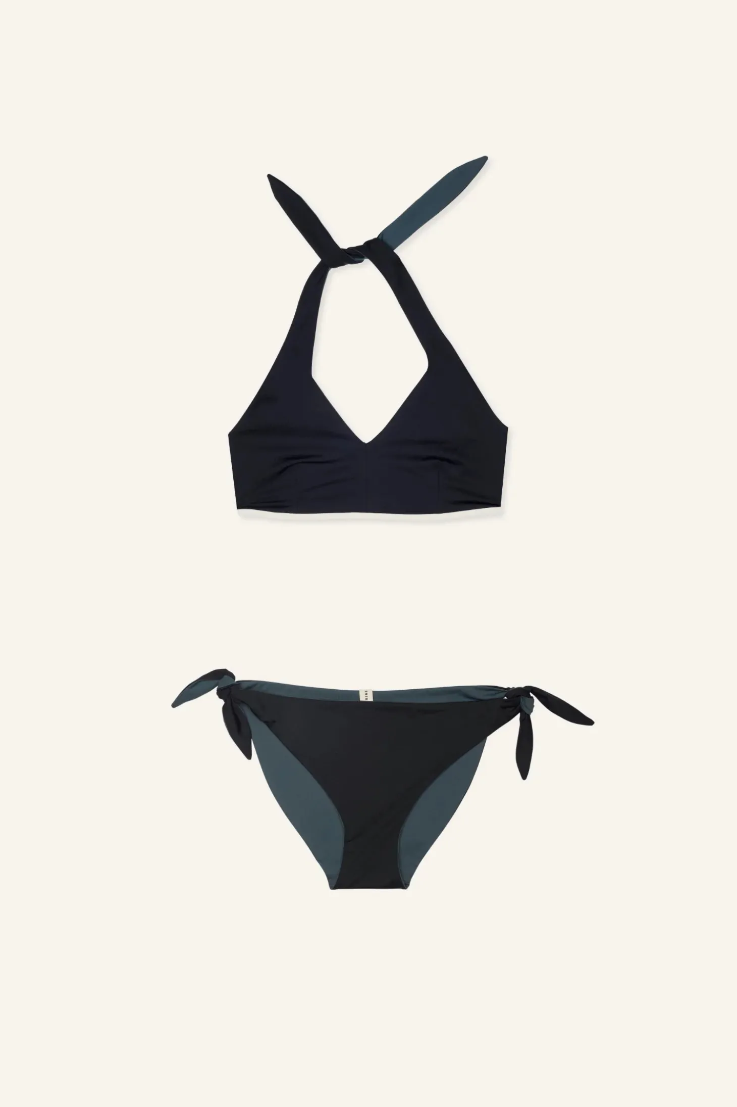 The HOLIDAY SET might be our most classic bikini style. With a halter-style top and side ties on the bottom, this bikini is endlessly customizable and suits every body type. It’s also designed to be reversible, so you get two styles in one.