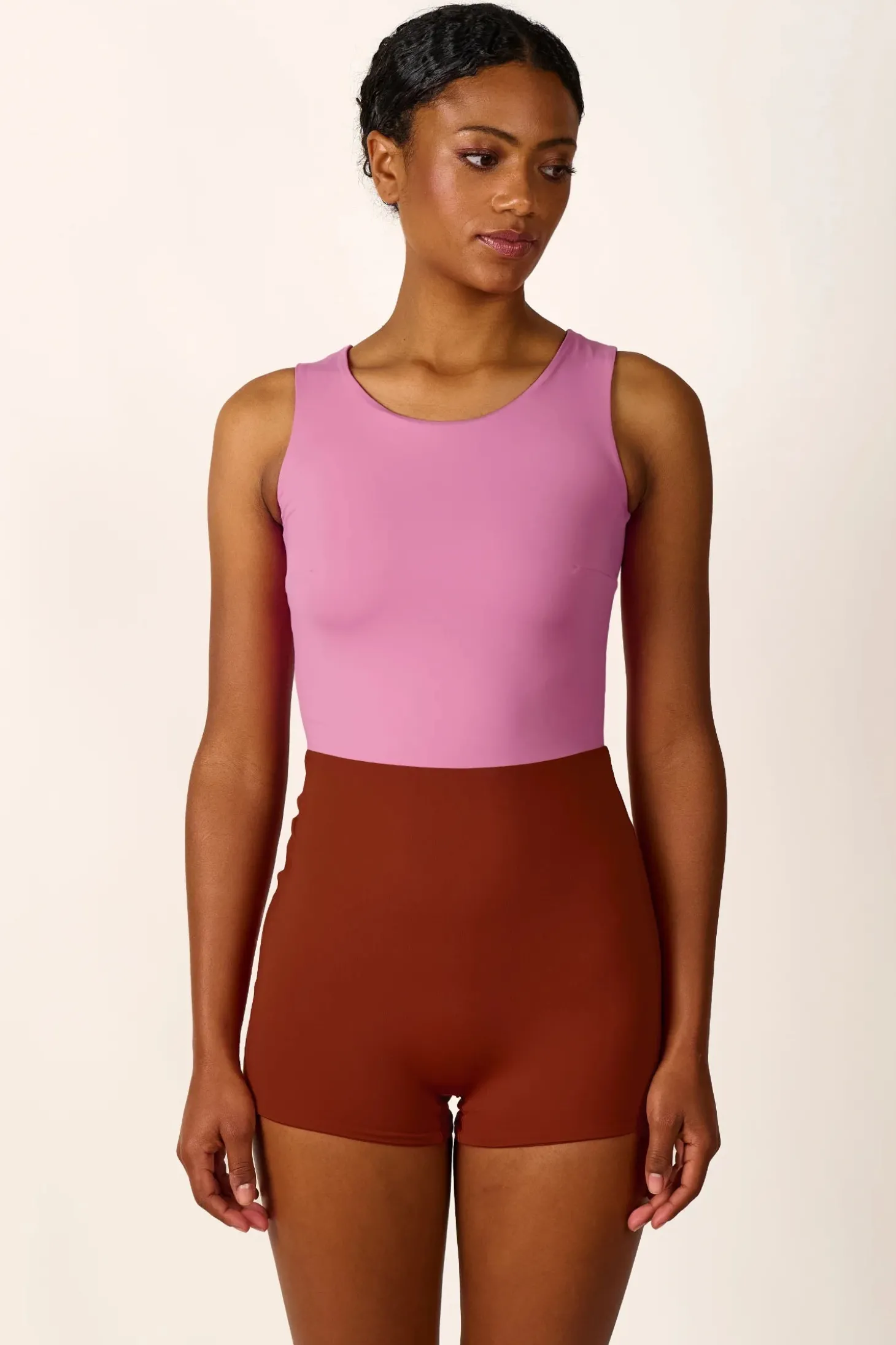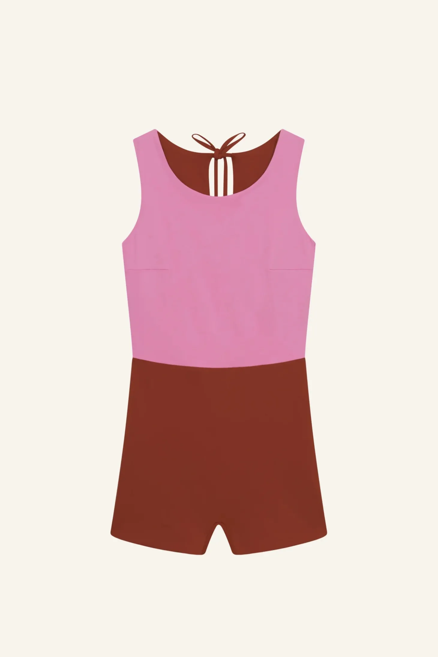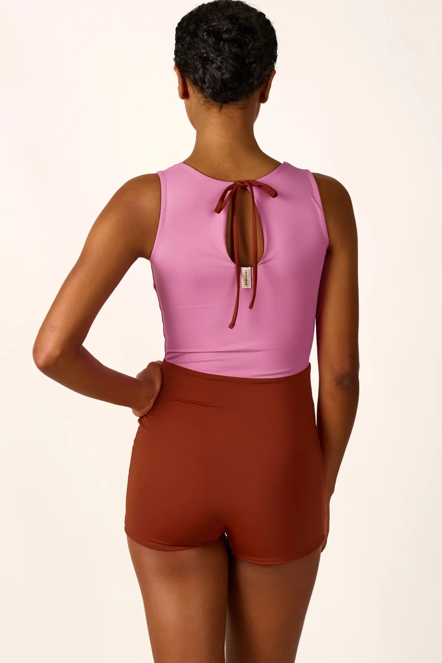 Combining the comfort of shorts with the secure fit of a one-piece, our SHORTIE is our first swimsuit with extended legs. The boyshort-style legs cover the hips and upper thighs for extra skin protection – perfect for swimming, surfing, or sunbathing. The color-blocked waistline creates an elegant two-piece look, while the sporty top with wide straps and a high, round neckline and keyhole back add a stylish touch. Adjustable fit thanks to the tie at the back of the neck.