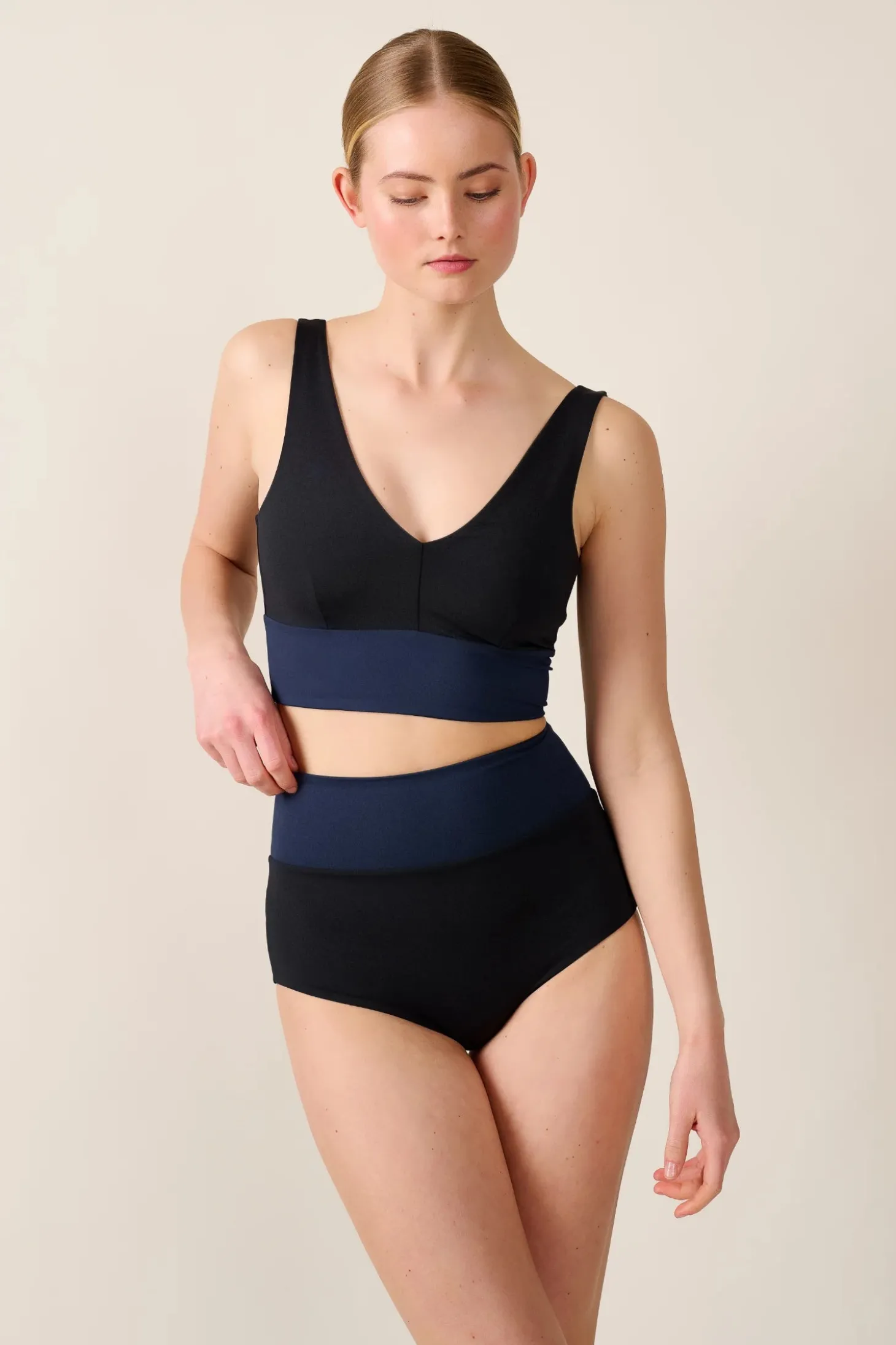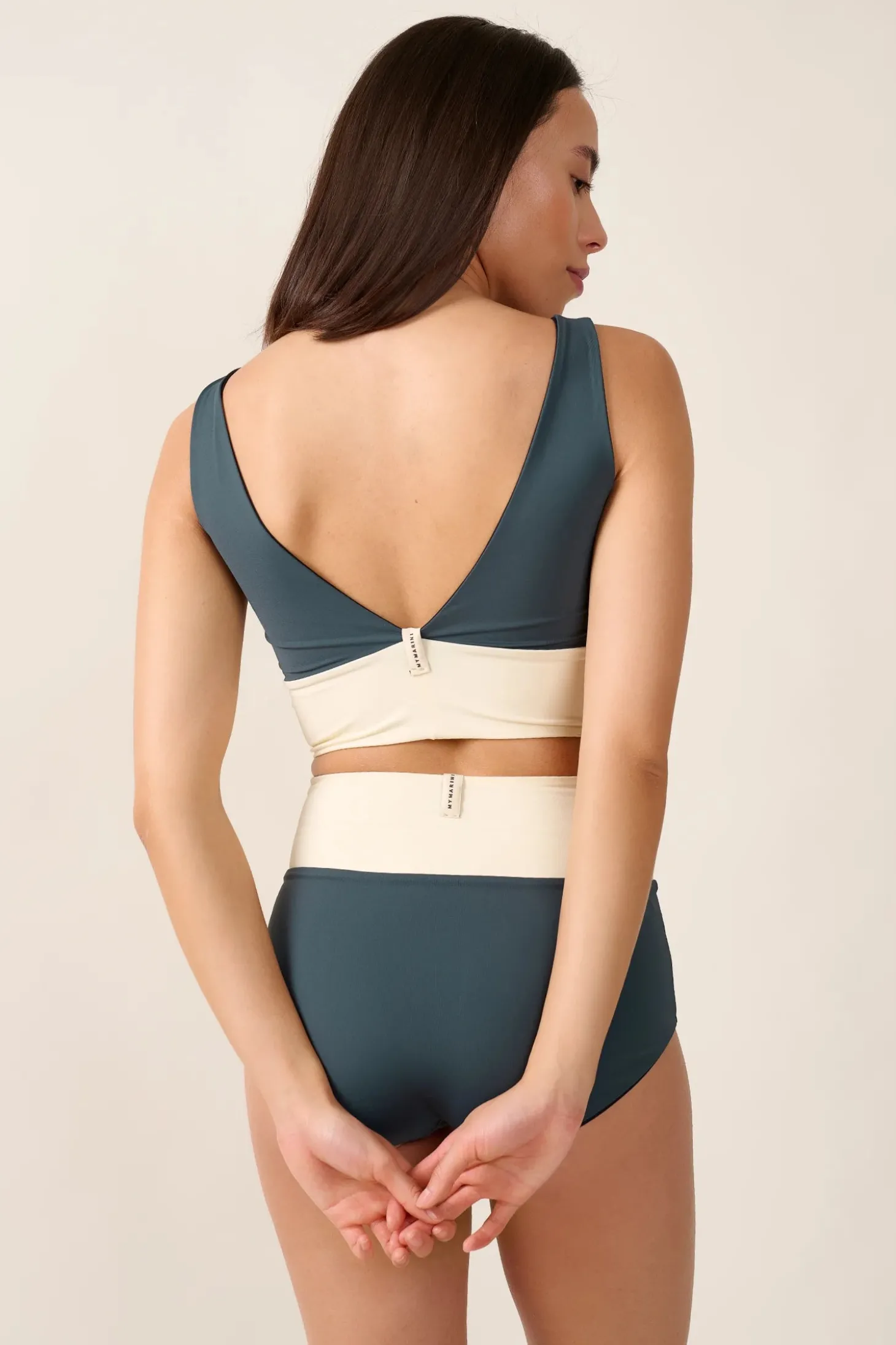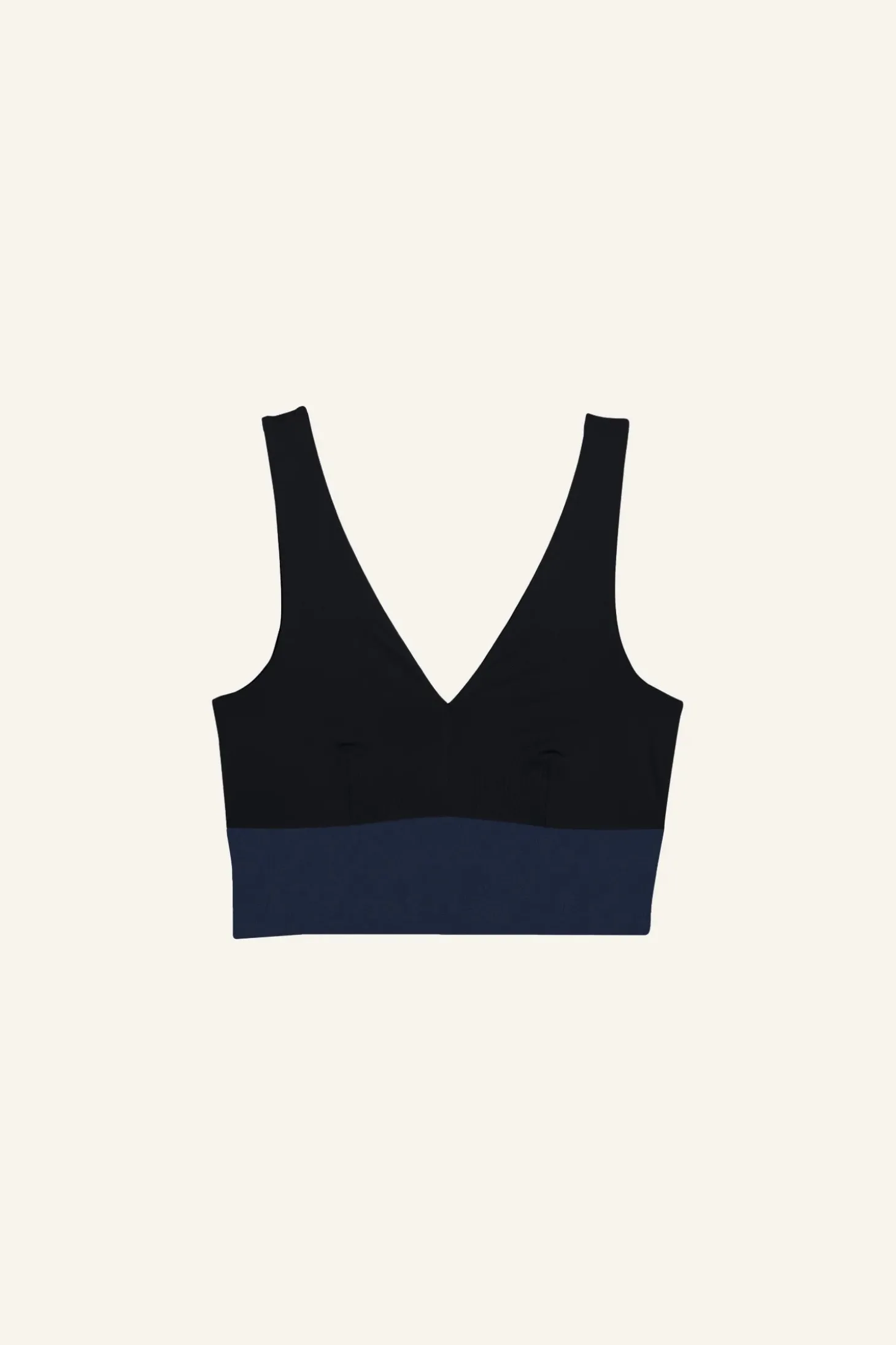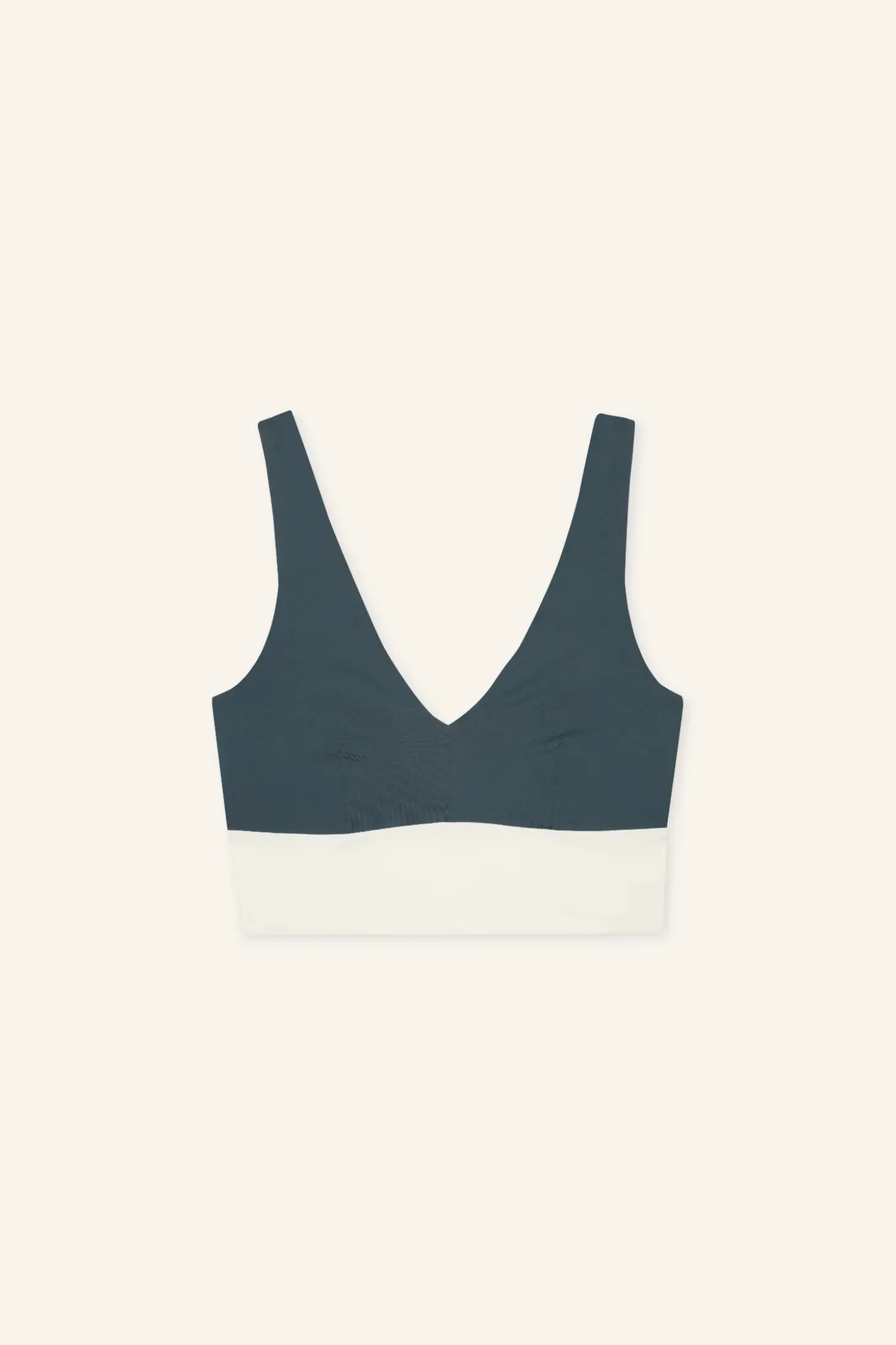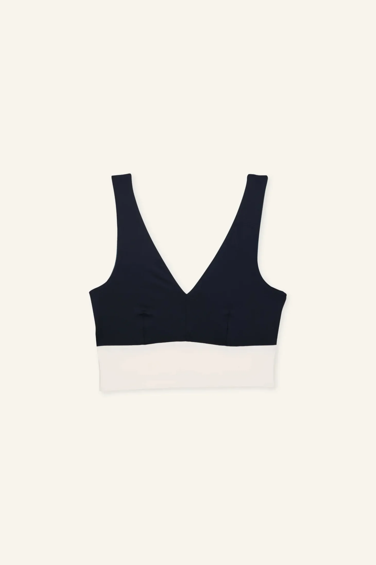 A style we love! This bikini top is comfortable and offers a good support through the wide underbust band while swimming, surfing or for your next yoga session. The deep v-neck makes a beautiful decollete.